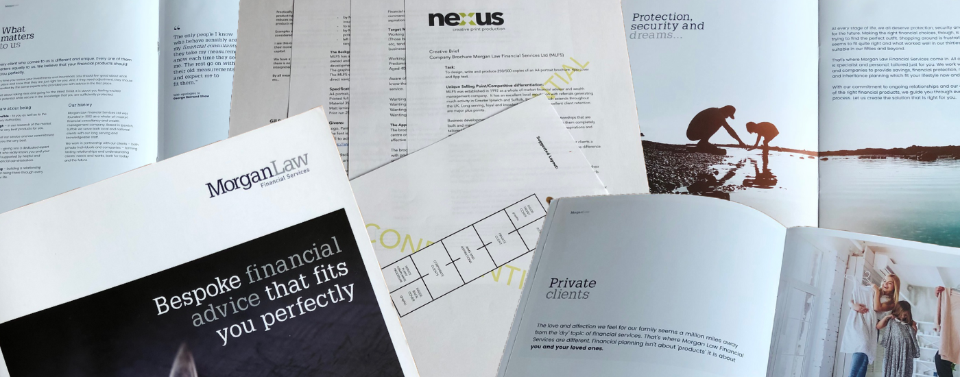 A representative from Morgan Law Financial Services said; “Gill was recommended to us as someone who could help us produce a client facing brochure. Initially she spent time with us to completely understand how we worked and the core values we wanted to present to our potential new clients.